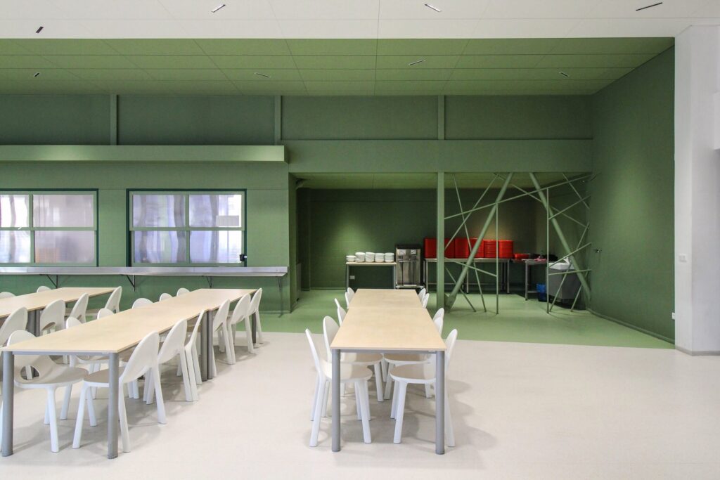 Cieľom bolo znížiť hlučnosť a podporiť duševnú aj fyzickú pohodu. Jemná zelená farebnosť, nové LED osvetlenie a rozdelenie jedálne na zónu koridoru a zónu na stravovanie pomáhajú vytvoriť funkčné a zároveň pokojnejšie prostredie.